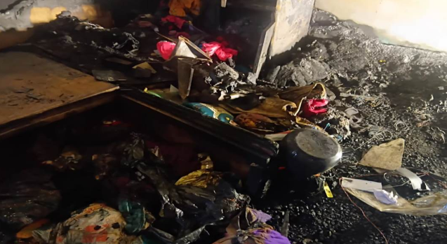 जिसके कारण घर में रखा सारा सामान—कपड़े, बिस्तर, वॉशिंग मशीन वगैरह—जलकर राख हो गया। उसने नम आँखों से बताया कि परिवार के सदस्यों का सारा सामान और कपड़े जलकर राख हो गए।