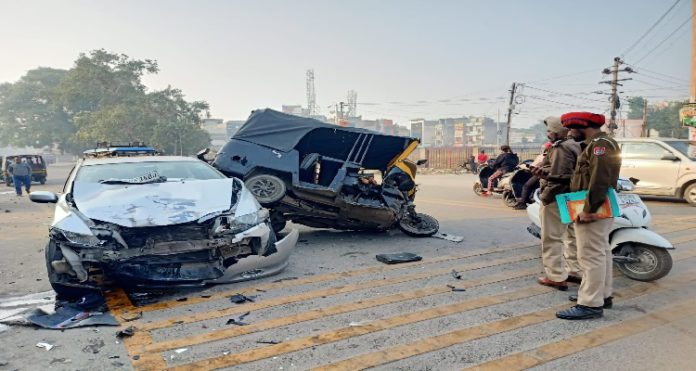 हादसा इतना भयानक था कि कार और आटो के परखच्चे उड़ गए। एयर बैग खुलने से कार चालकों का बचाव हो गया लेकिन ऑटो चालक की हालत गंभीर बताई जा रही है। उधर, मौके पर पहुंची पुलिस ने घटनास्थल का जायजा लेकर जांच शुरू कर दी है।