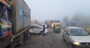 लुधियान, 25 नवंबर| बढ़ती धुंध के कारण यहां एक बड़ा हादसा हो गया है। शनिवार सुबह नेशनल हाईवे पर स्कूली बच्चों की बस समेत 25 से 30 गाड़ियां आपस में टकरा गईं। लोगों ने नेशनल हाईवे के बीच खड़े होकर शोर मचाया और दूसरे लोगों को हादसे का शिकार होने से बचाया।